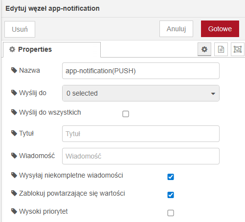 Zablokuj powtarzające się wartości - Po zaznaczeniu nie będzie możliwe wysłanie powiadomienia o tej samej treści co ostatnie wysłane powiadomienie.