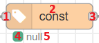 Wyjście zwraca wartość ustawioną w bloczku. Typ danych oraz ich wartość jest deklarowana w ustawieniach bloczka.