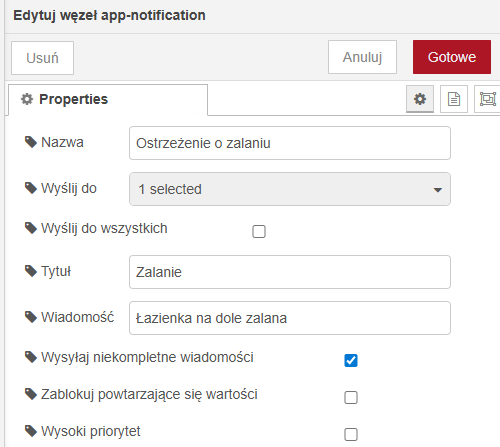Zablokuj powtarzające się wartości - Po zaznaczeniu nie będzie możliwe wysłanie powiadomienia o tej samej treści co ostatnie wysłane powiadomienie.