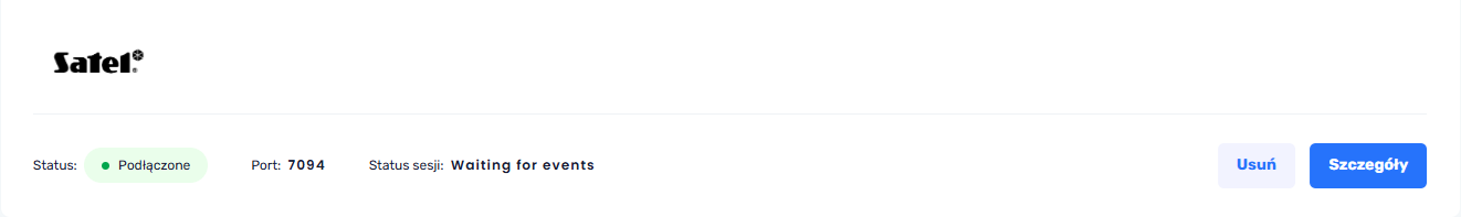 Po udanej konfiguracji użytkownik powinien mieć widok jak na zdjęciu wyżej, gdzie wyraźnie widać status połączenia z centralą, port oraz status sesji.